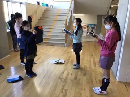 国語の時間です。先日配られたiPadを活用して、狂言の学習をしています。