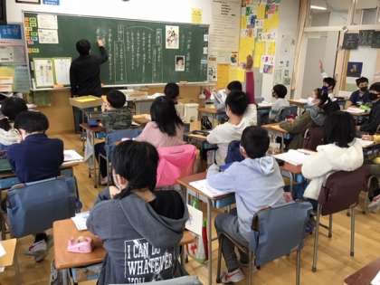 道徳の時間です。「マンガ家 手塚治虫」自分らしさについて話し合っています。