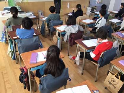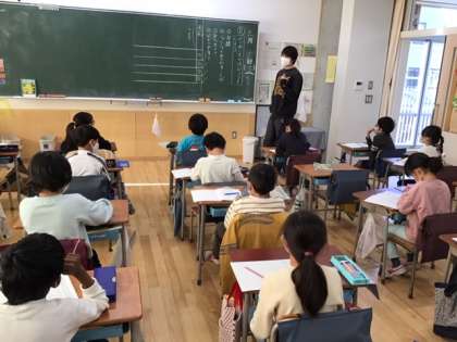 国語の時間です。これから説明文の発表会をします。発表のポイントをしっかり押さえることが大事ですね。