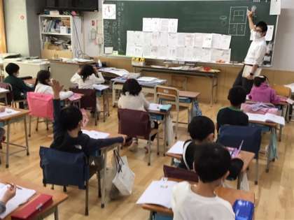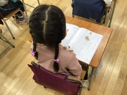 国語の時間です。漢字もしっかりと書けるようになりました。今日は、「円」を習っています。