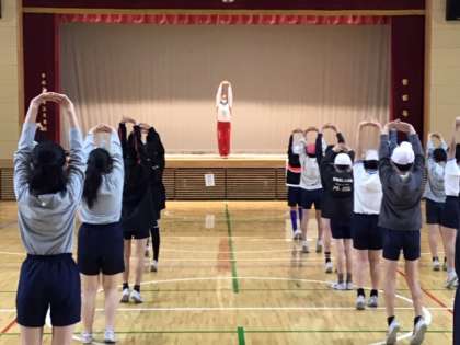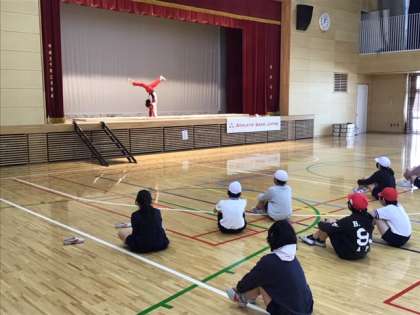 4時間目は、「スポーツ体験」です。飯塚友海先生の師範は本当に素晴らしく、会場は拍手が湧き上がりました。
