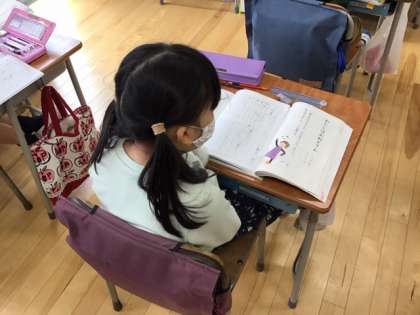 国語の時間です。「わたしはおねえさん」すみれちゃんがしたことのわけを考えていきます。