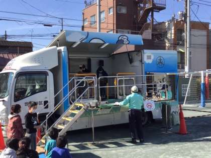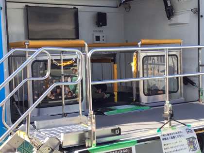 起震車「なまず号」で、震度7を体験しました。