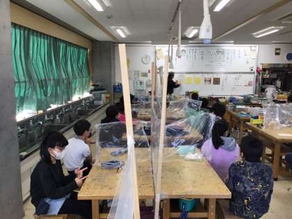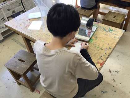 図工の時間です。「自画像」に挑戦中です。バランスを考え、ていねいに描いていきます。