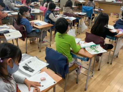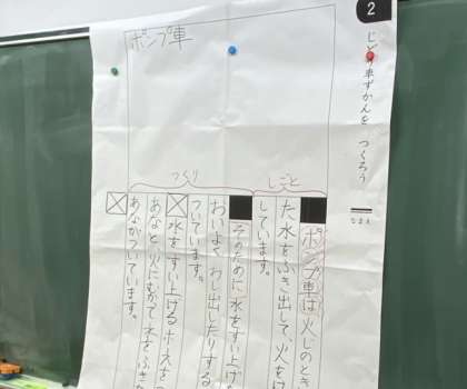 ポンプ車の次は、自分で選んだ車の説明文をワークシートにまとめます。