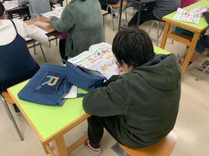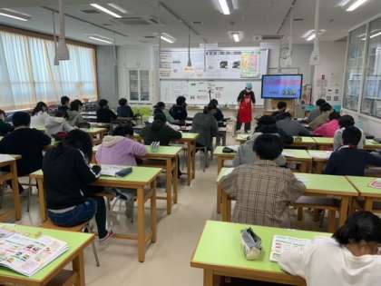 調理の学習です。メニューは、ジャーマンポテトです。ジャガイモの皮をむくには、ジャガイモを回転させることがコツであることなどを確認しながら学びました。