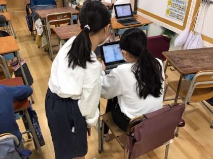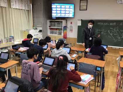 算数の時間です。図形の学習の中で、プログラミングに取り組んでいます。