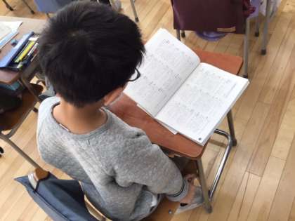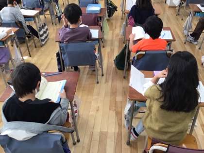 日本語の時間です。短歌の学習をしています。「防人の歌」の説明に興味深く聴き入っています。