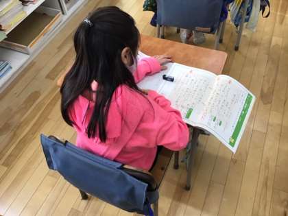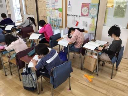 国語の時間です。作文の書き方、特に原稿用紙の使い方を学習しています。