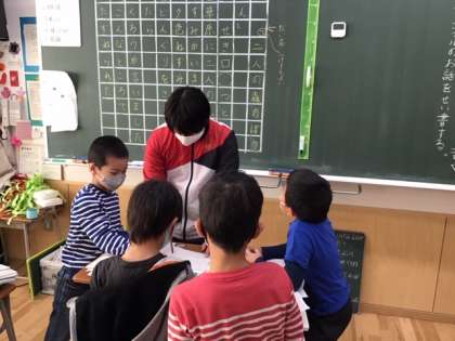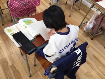 国語の時間です。「お話のさくしゃになろうl今日はm原稿用紙に清書をします。