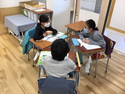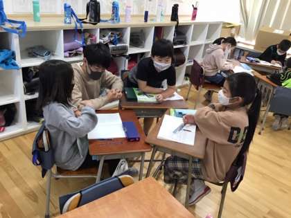 社会科の時間です。安全なくらしを守るために、誰がどんなことをしているのかを話し合っています。
