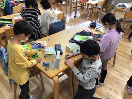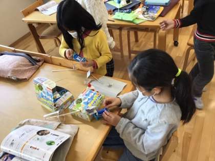 理科の時間です。スイッチを工夫した、おもちゃづくりに取り組んでいます。