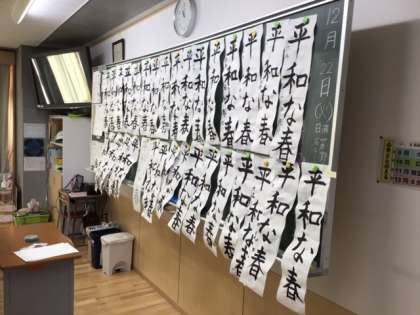 国語の時間です。さすがは6年生です。しっかりした字を書いています。
