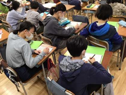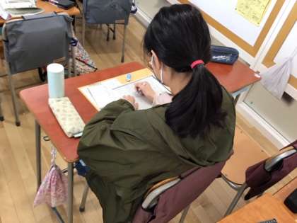 国語の時間です。早いですね。もう卒業文集に取り組んでいます。