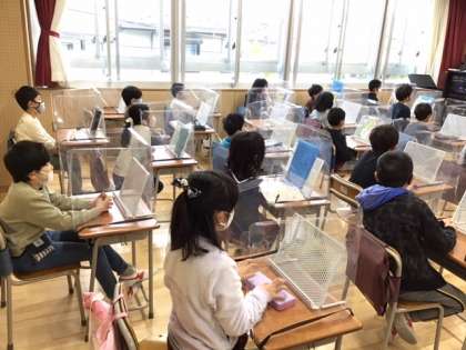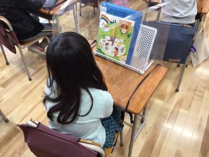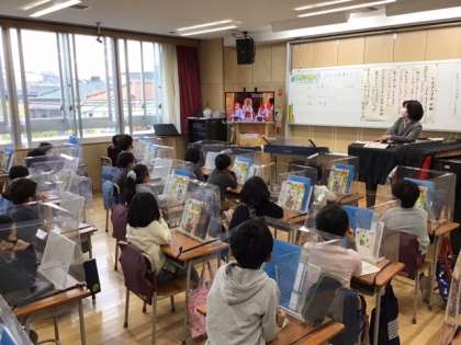 音楽の時間です。「九面たいこ」の映像を見て、その感想を発表しました。