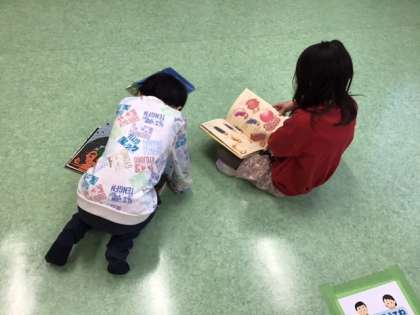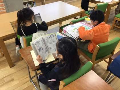 読書の時間です。1年生のみなさんは、本が大好きです。これからもたくさん読書をしてくださいね。