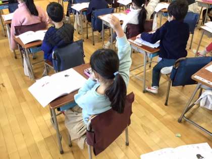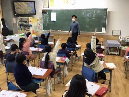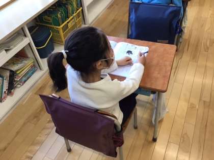 国語の時間です。漢字の学習です。今日は「音」を練習しています。