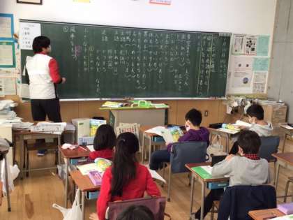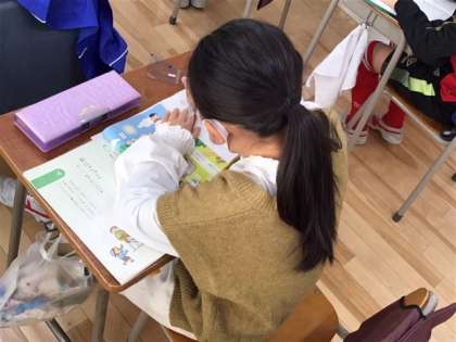 国語の時間です。主語と述語の関係に気をつけて、文章を書いています。
