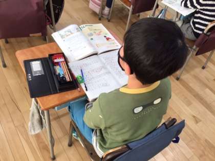 算数の時間です。九九のきまりについて振り返り、学習のまとめをしています。