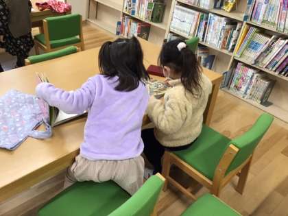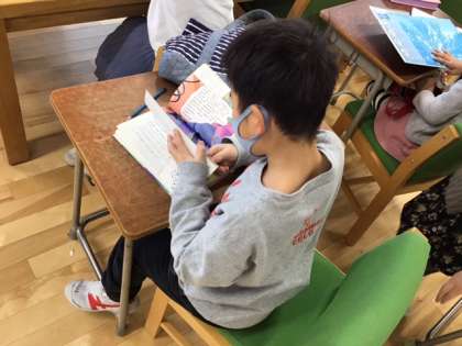 読書の時間です。読みたい本を見つけて、思い思いに読書をしています。
