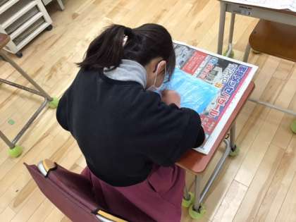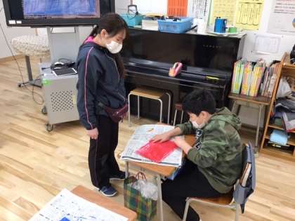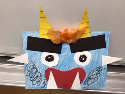 図工の時間です。節分で鬼退治をするときの「鬼」を作っています。