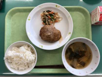 献立 ごはん、むろあじバーグ、ごまあえ、大根のみそ汁、牛乳