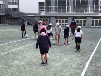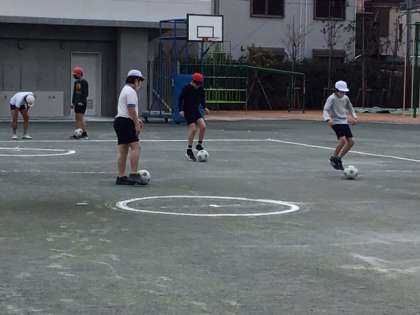 体育の時間です。サッカーの学習に入りました。まずは、ボールコントロールからですね。