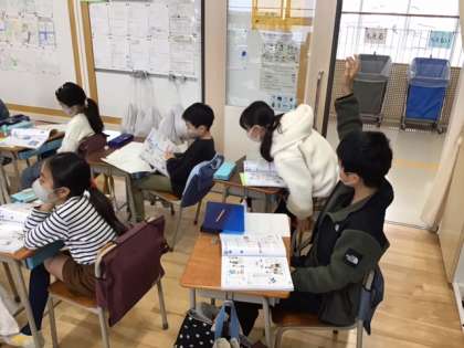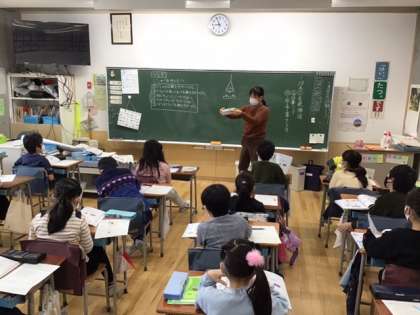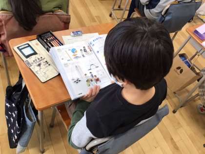 理科の時間です。じしゃくを使ったおもちゃやゲームを作って、じしゃくの性質のまとめをします。