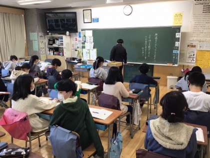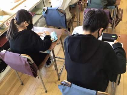 国語の時間です。メディアとの関わり方について、自分の考えをまとめ、友達と伝えあっていきます。