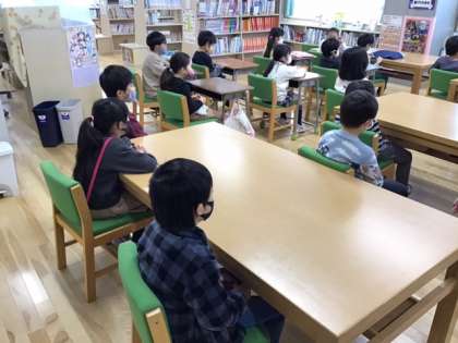 国語の時間です。司書の先生の読み聞かせは、いつも楽しみですね。