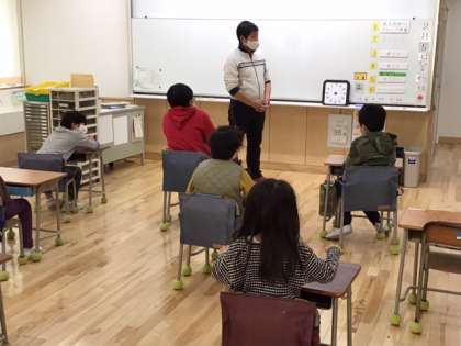 今週は、節分をテーマに先生からのお話がありました。「今年の恵方はどの方角かな?」