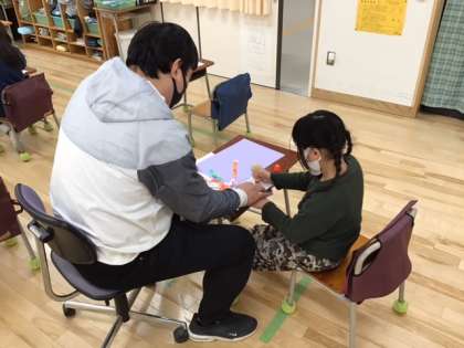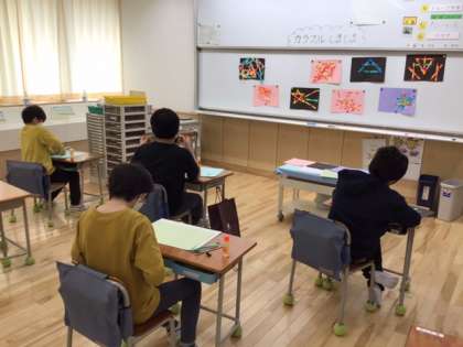 「カラフル しましま」思い思いにカラフルな形を組み合わせて、オリジナル作品を作っていきます。