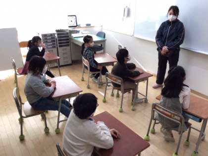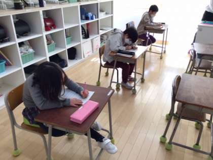 グループ学習の時間です。集中して漢字の学習に取り組んでいます。
