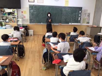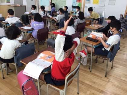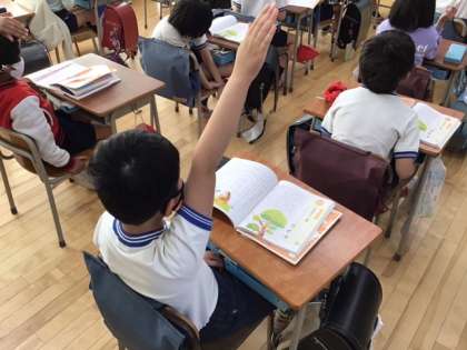 道徳の時間です。「ぐみの木と 小鳥」親切にしてもらって、うれしかったことを発表しています。
