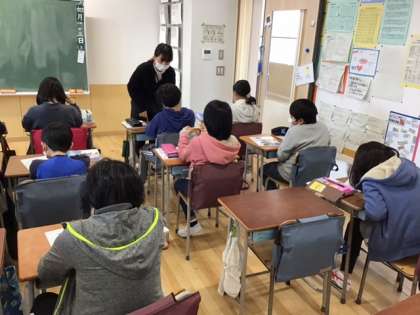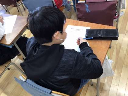 学級活動の時間です。クラブ発表会が終わって、来年度のクラブ設置希望アンケートを書いています。