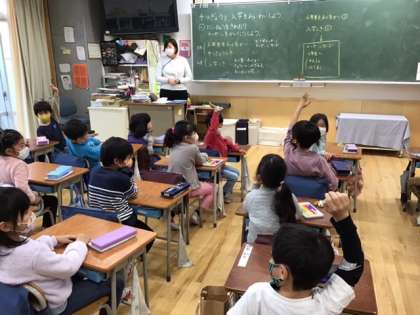 学級活動の時間です。「そつぎょうとにゅうがくをおいわいしよう」6年生を送る会や入学式の代表を決めます。