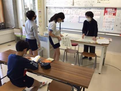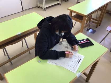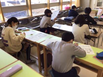 家庭科の時間です。この1年間に学習した内容のまとめをしています。