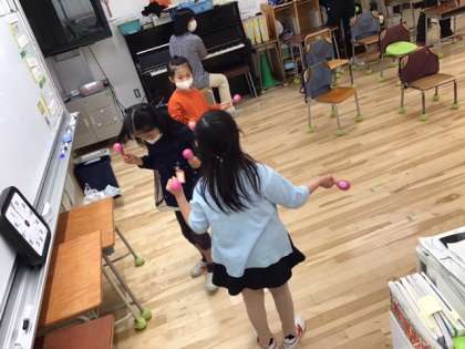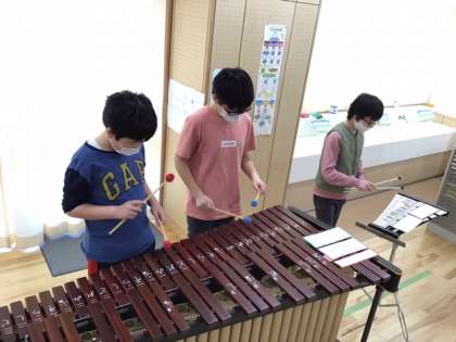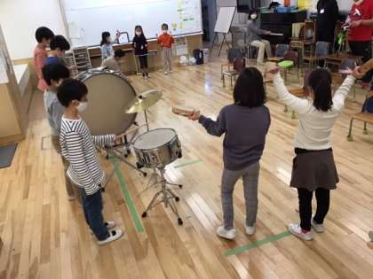 音楽の時間です。合奏「ミッキーマウスマーチ」に挑戦しています。