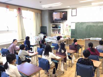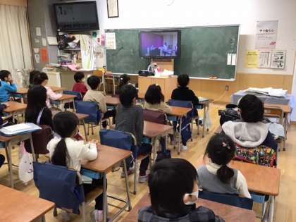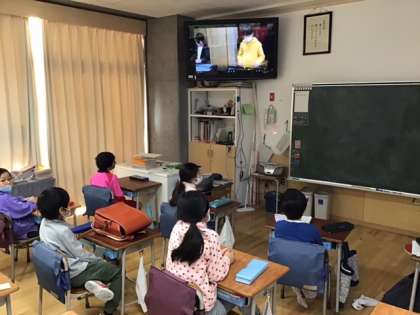 今日は、映像配信による音楽集会です。音楽委員会の合奏やアーティスト当てクイズがありました。