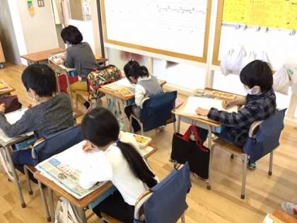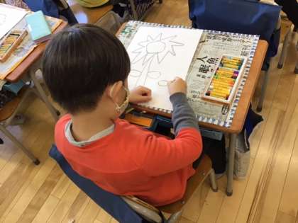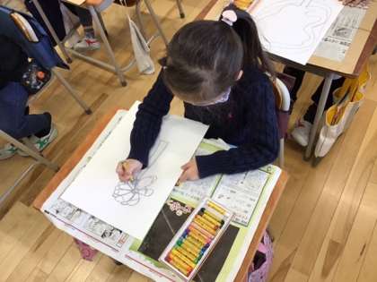 図工の時間です。「こころのはなをさかせよう」6年生にありがとうの気持ちを込めて作っています。
