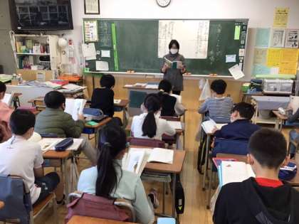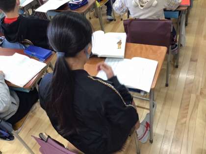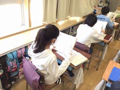 国語の時間です。「終わり」から「はじめ」に向けて読み進め、話の全体像をしっかりとつかみます。