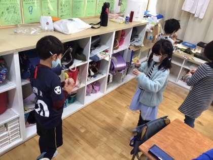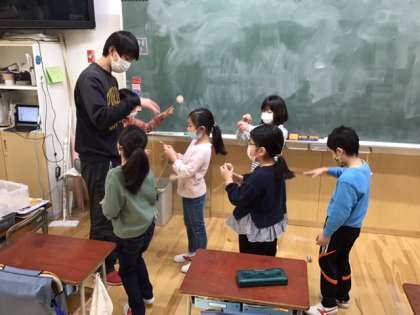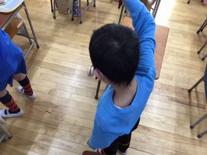 生活科の時間です。昔あそびの「ヨーヨー」に挑戦しています。