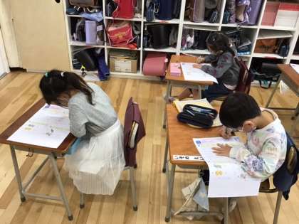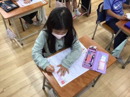 国語の時間です。1年生で習った漢字のまとめのテストです。