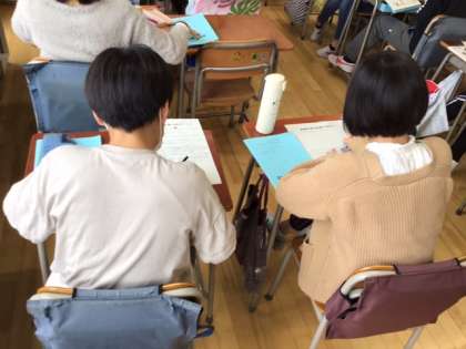 総合的な学習の時間です。「未来の自分を見つめよう」10年後の自分を想像してみましょう。