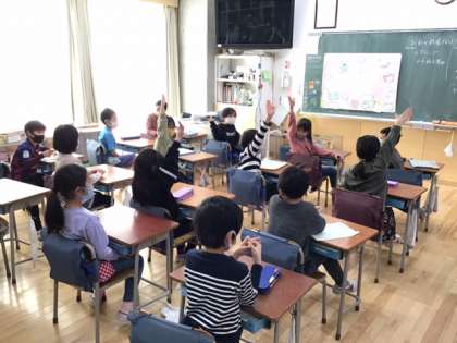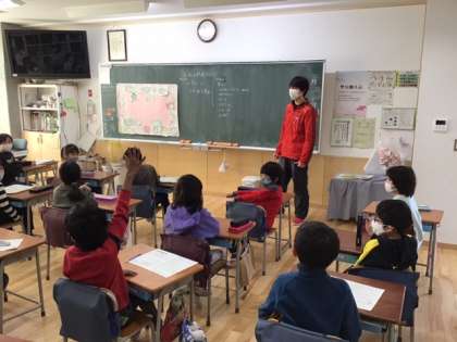 学級活動の時間です。「お別れ会」の企画や役割分担を考えています。