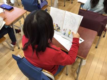 国語の時間です。「ずっと ずっと大すきだよ」とても上手に音読しています。