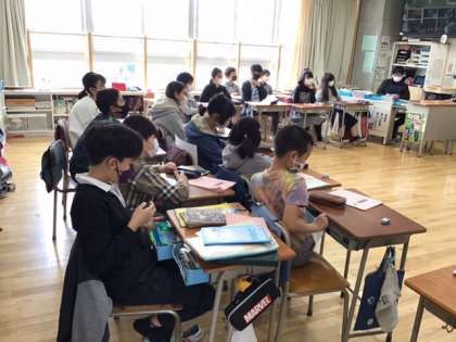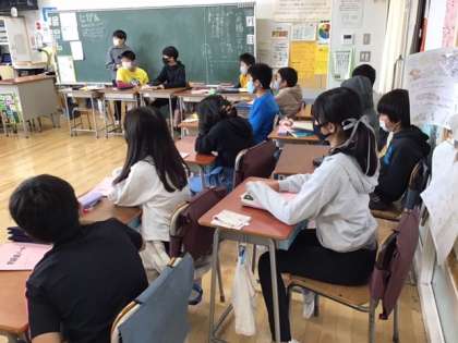 特別活動の時間です。第16会学級会の様子です。議長団が中心になって進めています。