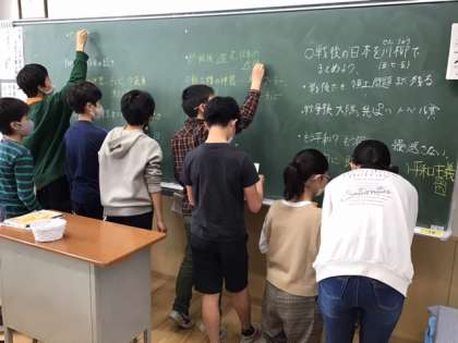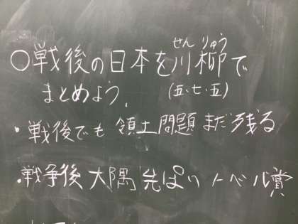 社会科の時間です。「戦後の日本を川柳でまとめよう」キラリとセンスが光りますね。