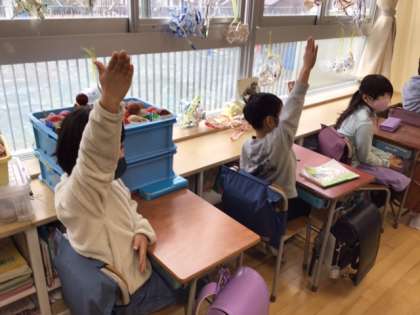 国語の時間です。「楽しかったよ2年生」発表会の様子です。とても楽しい1年間でしたね。