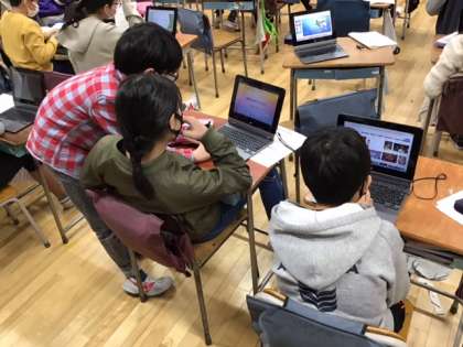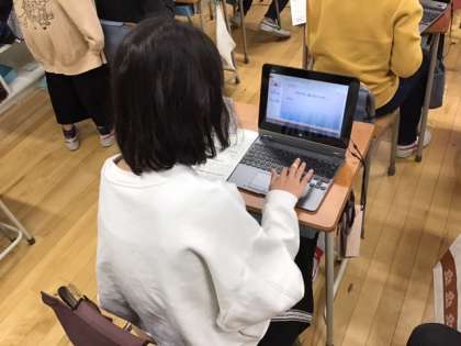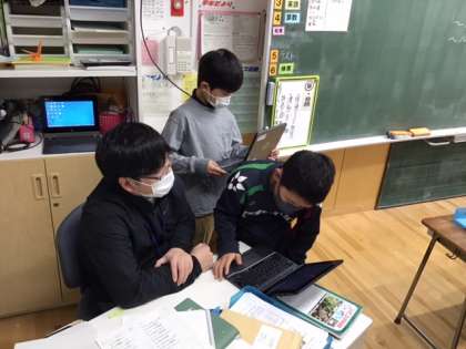 総合的な学習の時間です。SDGsについて探究したことを、プレゼンテーションソフトを駆使して発表資料にまとめています。
